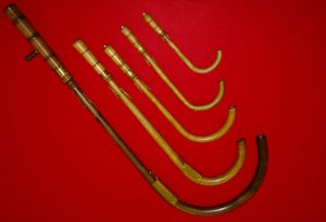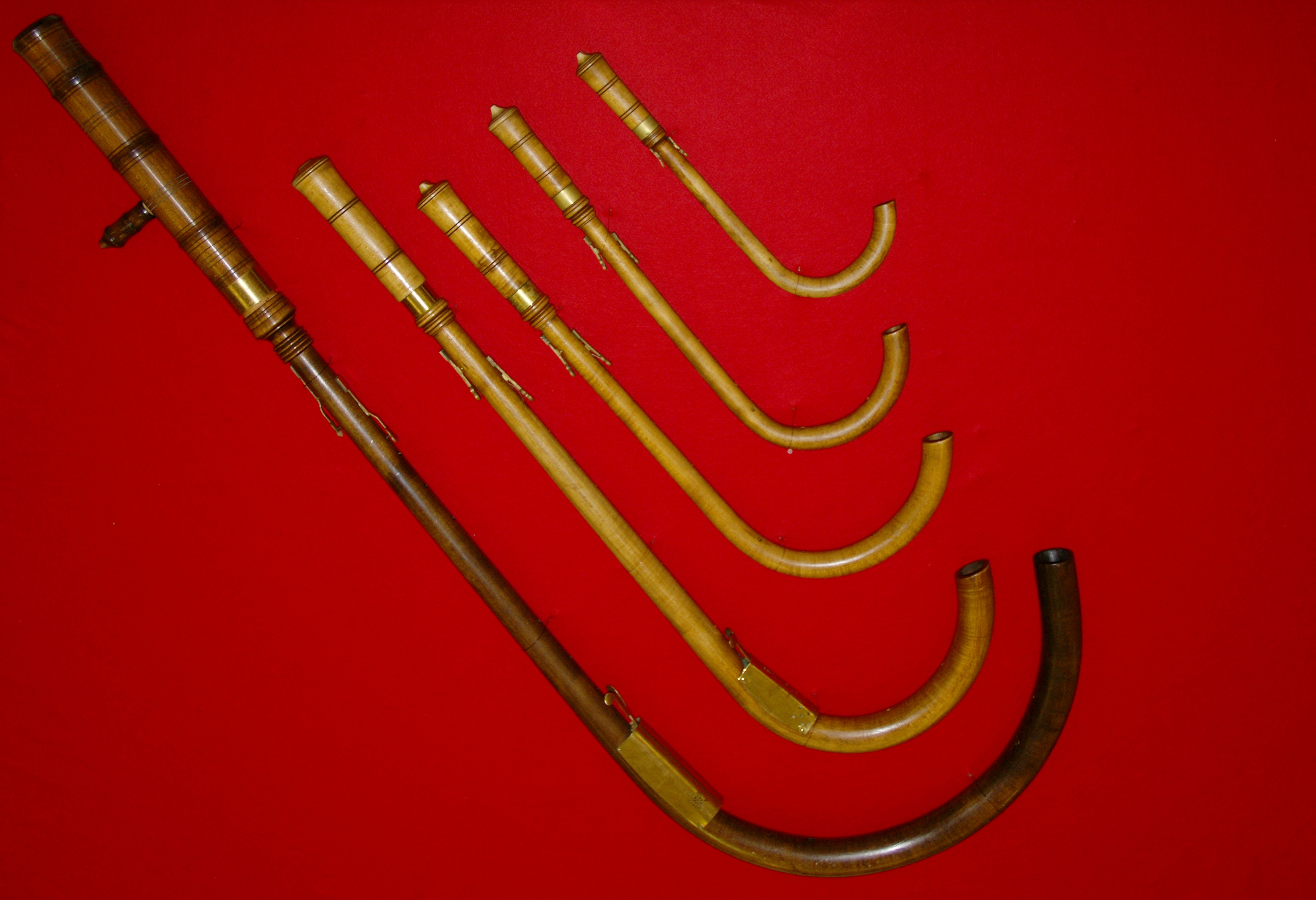 Krummhörner Mehr Infos zum Instrument Your browser does not support the audio element. Krummhorn-QuartettTielmann Susato, Bergerette „Dont vient cela“, Ausführende: Medelike Consort ← → Sopran-, Alt-, Tenor- und Bass-Krummhorn Hersteller: Early Music Shop/Gertraud Umlauft Großbass-Krummhorn Hersteller: Moeck