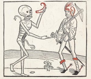 Über das Gemshorn wissen wir nicht viel. Es ist davon auszugehen, dass schon in prähistorischer Zeit versucht wurde, hohle Tierhörner zum Klingen zu bringen. Und vermutlich kam dabei gelegentlich etwas heraus wie unsere Gemshörner. Überliefert ist leider keiner dieser vorgeschichtlichen Versuche. Auch aus dem Mittelalter ist nichts bekannt. Das früheste Zeugnis ist ein Holzschnitt im „Heidelberger Totentanz“ (um 1488), auf der der Tod mit Gemshorn dargestellt ist.