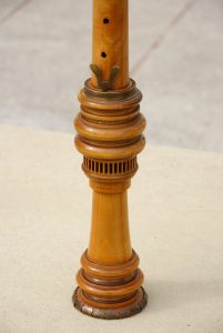 Zunächst, nicht zu übersehen, ihre Form: Während Instrumente, insbesondere Holzblasinstrumente, im 16. Jahrhundert zu schlichten Formen tendierten, schien sich hier der Instrumentenbauer an der Drehbank regelrecht ausgetobt und den barocken Stil 100 Jahre vorweggenommen zu haben. Welchen Grund könnte es dafür gegeben haben?