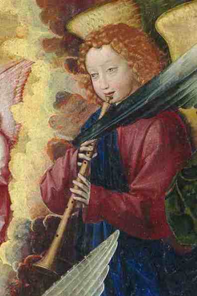 Engel mit Schalmei, Master of the Saint Lucy Legend, Mary, Queen of Heaven (Ausschnitt), c. 1485/1500