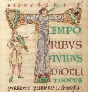 Musiker mit Rebec, Passionale, 1. Viertel 12. Jahrhundert.