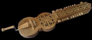 Mittelalterliche Drehleier (alte Bezeichnung: Organistrum).