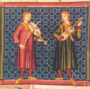 Musiker mit Armfidel und Citole, Cantigas de Santa Maria, 13. Jh.