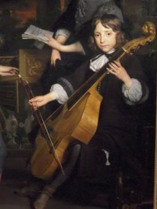 Die Viola da Gamba entstand vermutlich in Spanien im 15. Jahrhundert; zu ihren „Vorfahren“ gehören die Fidel und die Laute. Anfangs gabe es mehrere Spieltechniken, z.B. quer auf den Knien des Spielers liegend, was das Streichen nicht sehr erleichterte, und so setzte sich die Haltung zwischen den Knien mit waagrechtem Strich durch.