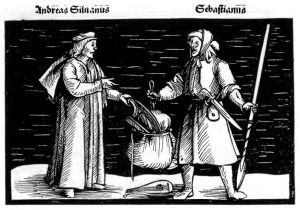 Die Dialogpartner der „Musica getutscht und außgezogen“: links Andreas Silvanus, rechts Sebastian Virdung. Abbildung aus dem Buch.
