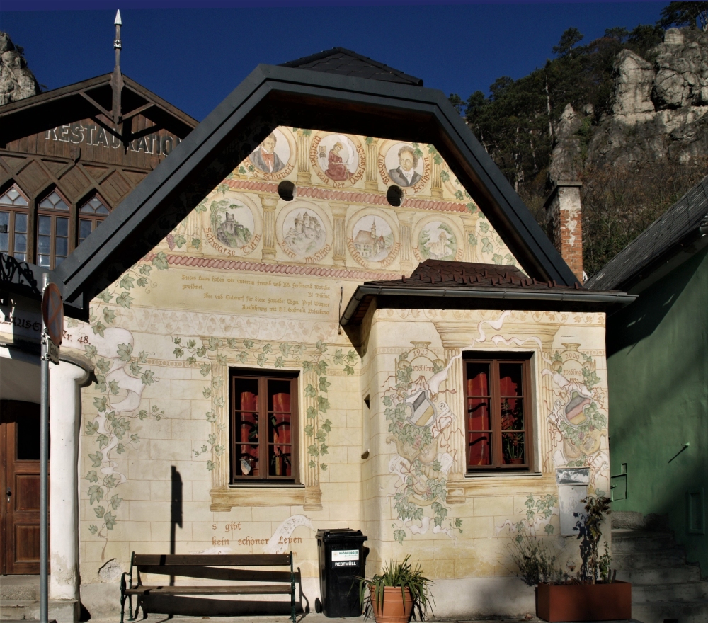 Hausfassaden Boznergasse 5Weißes Kreuz-Gasse 48Badstraße 6Beethoven MusikschuleWiener Straße 68Hauptstraße 34Harald-Lowatschek-Volksschule Lerchengasse 35Neusiedler Straße 8Neusiedler Straße 30Ecke Badstraße/GoethegasseEcke Badstraße/BeethovengasseAn der goldenen Stiege 25Jakob Thomastraße 28Gasthof in der Klausen 48Neugasse 7Dr. Ludwig Riegerstraße 24
