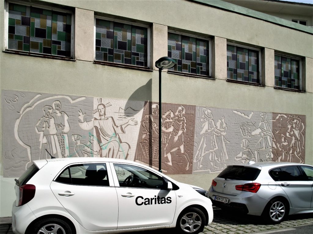 In Mödling schuf er auch das Sgraffito am Haus der Caritas in der Mölkergasse.