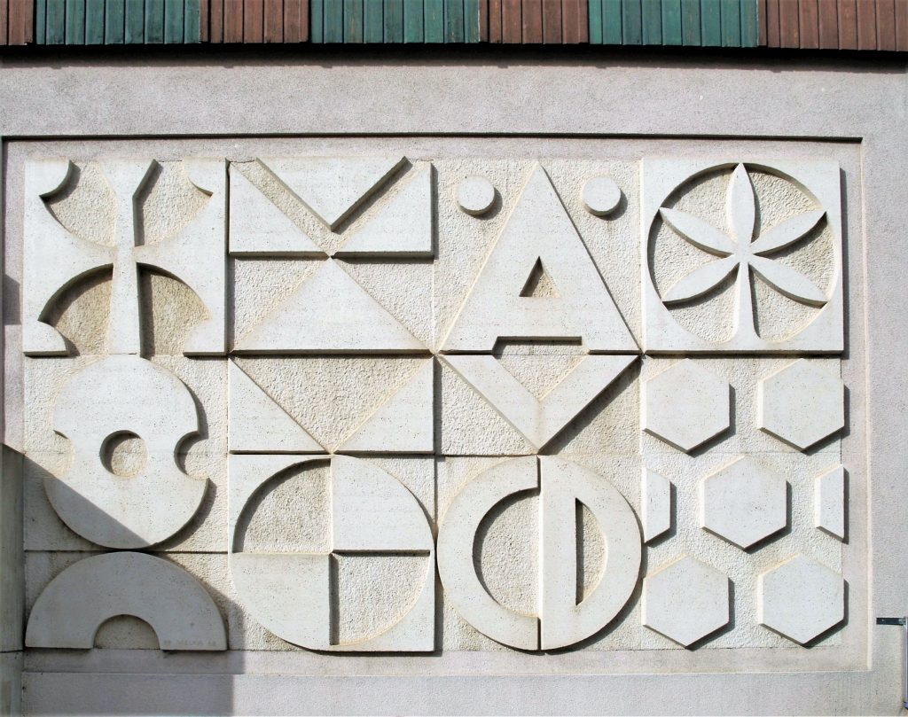Harald Lowatschek Volksschule, Lerchengasse 35, Fassade signiert 19 MELKA 68