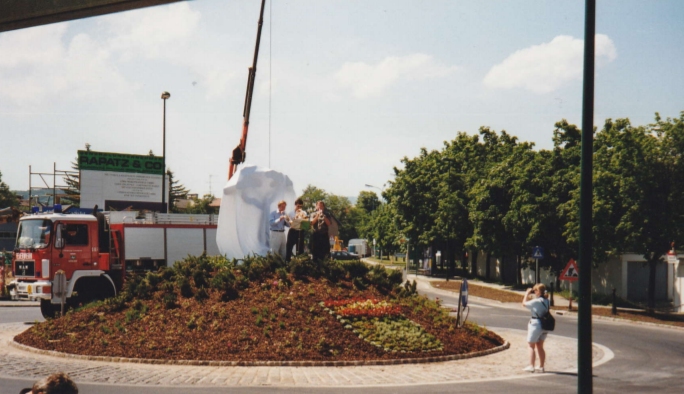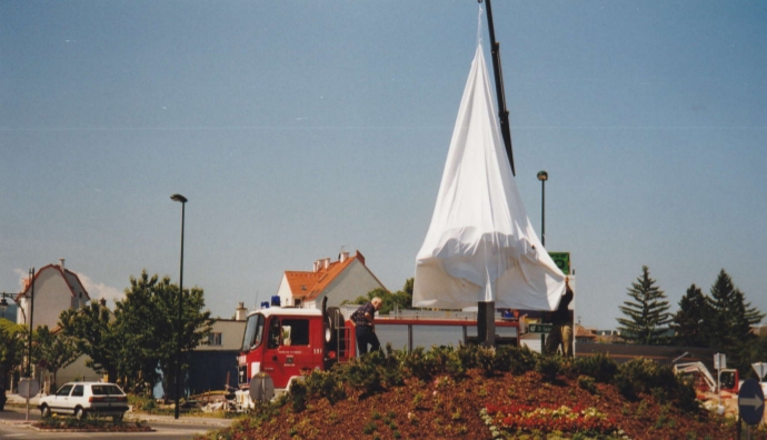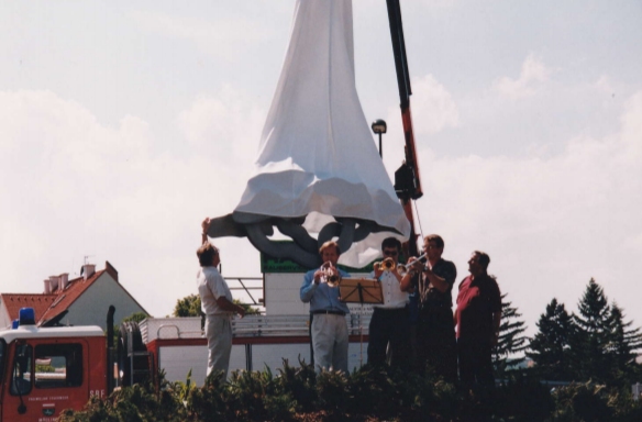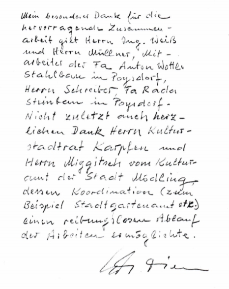Auf Initiative des Kulturreferates unter STR Robert Karpfen schrieb der Mödlinger Künstlerbund einen Bildhauerwettbewerb zur Gestaltung dieses „Einfahrtstores“ nach Mödling aus. Der Juryentscheid fiel auf Eduard Diem.