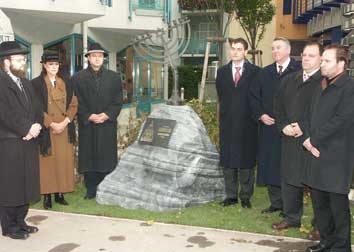 „Ihr Besuch ist für uns keine Selbstverständlichkeit sondern eine große Ehre“, betonte STR Mag. Bernhard Knipel als Initiator der Einladung. Kulturstadtrat Paul Werdenich, der gemeinsam mit GR Mag. Gerhard Wannenmacher für die Errichtung des Mahnmals verantwortlich zeichnet, dankte dem Mödlinger Künstlerbund und dem Künstler Karl Nowak für die einfühlsame Umsetzung des Mahnmals. Die Skulptur zeigt einen achtarmigen geknickten Leuchter, der die Verfolgung und das Leiden der jüdischen Bevölkerung symbolisiert.