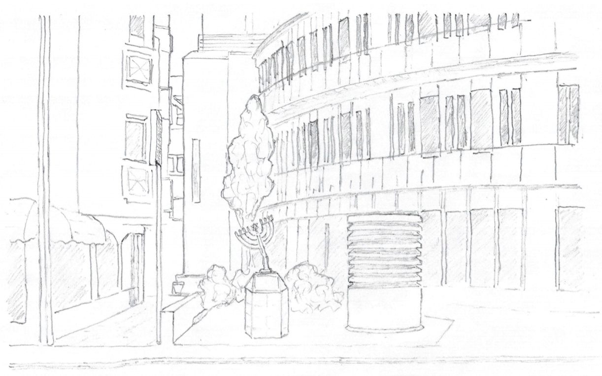 Meine Überlegung für ein Mahnmal im Gedenken an die Zerstörung der Synagoge war, ein Symbol zu finden, das auch jene Menschen erkennen, welche über die jüdische Religion nur wenig wissen: Chanukka, die hebräische Bedeutung ist Weihe, das achttägige jüdische Lichterfest im Dezember, bei dem zur Erinnerung an die Wiedereinweihung des zerstörten Tempels in Jerusalem an jedem Tag des Festes ein weiteres Licht entzündet wird. Diese Lampe ist somit symbolisch mit der schon einmal erfolgten Tempelzerstörung verbunden. Sie in beschädigter Form auf einem Sockel darzustellen, kann sicher mahnend auf die Zerstörung der ehemaligen Mödlinger Synagoge hinweisen. (Karl Novak)