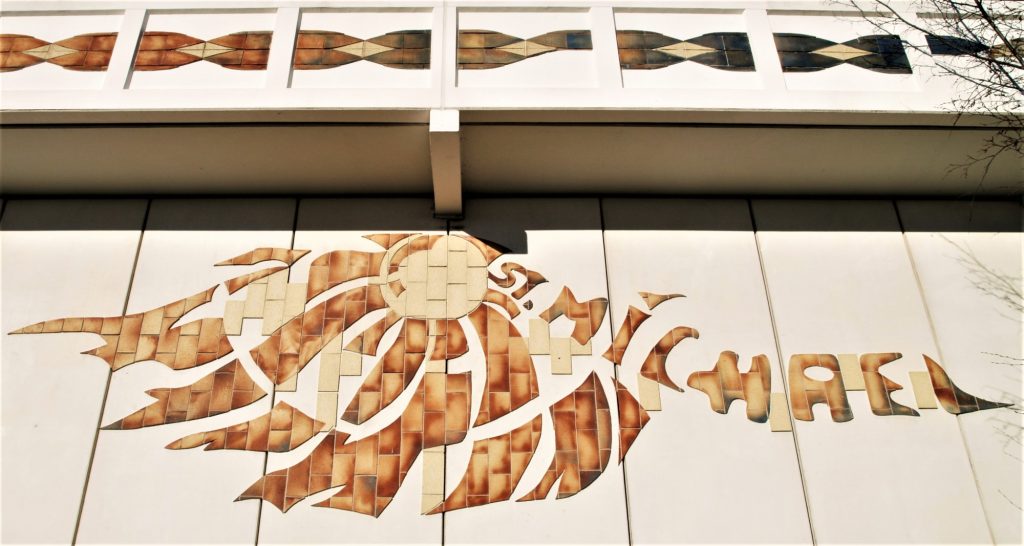 Nachdem die Kirche St. Michael von außen als solche mangels Glockenturm, Kreuz oder Hinweisschilder nicht erkennbar war – ein Wunsch des damaligen Pfarrers Wilhelm Müller – und sich eher als Wohnhaus mit Parkplatz im Straßenbild einordnete, war die Kritik an der architektonischen Lösung der Kirche groß. Rund 20 Jahre nach der Weihe von St. Michael ging Pfarrer Müller auf die nicht enden wollende Kritik ein und beauftragte die ihm persönlich bekannte evangelische Keramikerin Irmtraut Casari, die Entsendung des Erzengels Michael darzustellen.