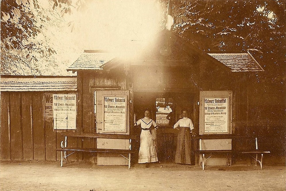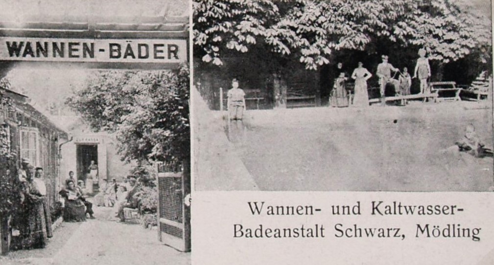 Dem Trend der 1870er Jahre zur Errichtung von Freibädern folgend (Kaltwasserkuren nach Pfarrer Kneipp!), entschließt sich Maria Schwarz, ungeachtet aller moralischer Bedenken dieser Zeit, zum Bau des Schwarzbades. Die finanzielle Unterstützung des Mödlinger Bäckers Ratz wird dankend angenommen und ausschließlich unter familiärer Mithilfe entsteht das erste Bassin von 27×12 m. Bald folgt ein zweites, das Damenbad rechts, getrennt durch Kassenraum und eine Kabinenreihe vom Herrenbad links. Diese Trennung wird polizeilich streng überwacht.
