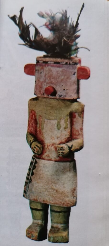 Die HOPI, ein indigenes Volk in Neu-Mexiko, leben in einer matriarchalischen Gesellschaft unter streng religiösen Ritualen. Sie feiern ihre Zeremonien mit wirkungsvollen Darbietungen wie Schlangentänzen, wobei sie die guten Geister, die unsichtbar unter den Menschen wohnen, beschwören wollen. Diese göttlichen Wesen oder Katschina werden nicht nur in Form von kleinen, bunt bemalten Puppen dargestellt, die den Kindern als Teil der religiösen Erziehung übergeben werden, sondern auch auf Wandgemälden oder auf Keramik.