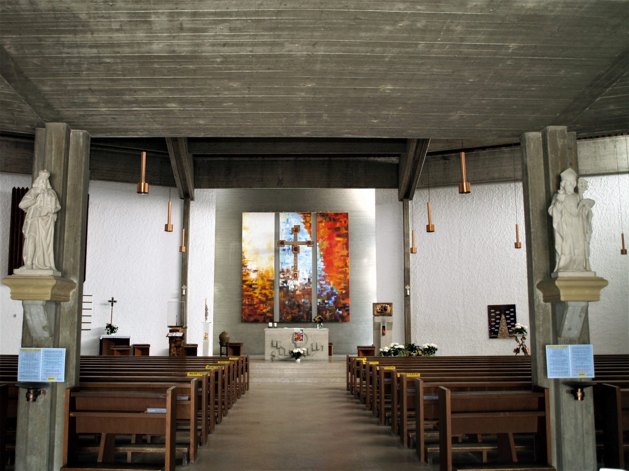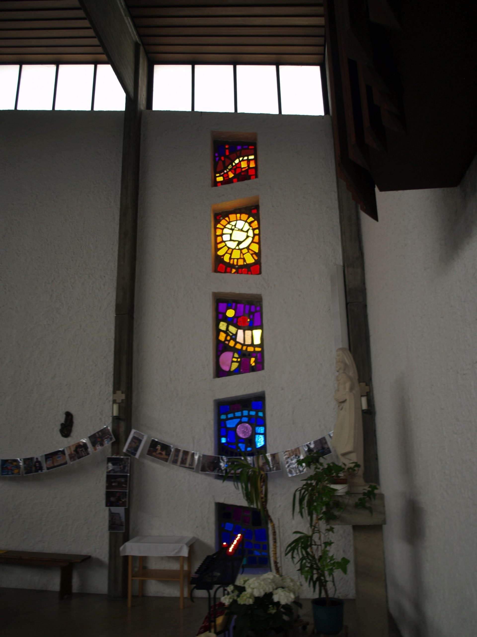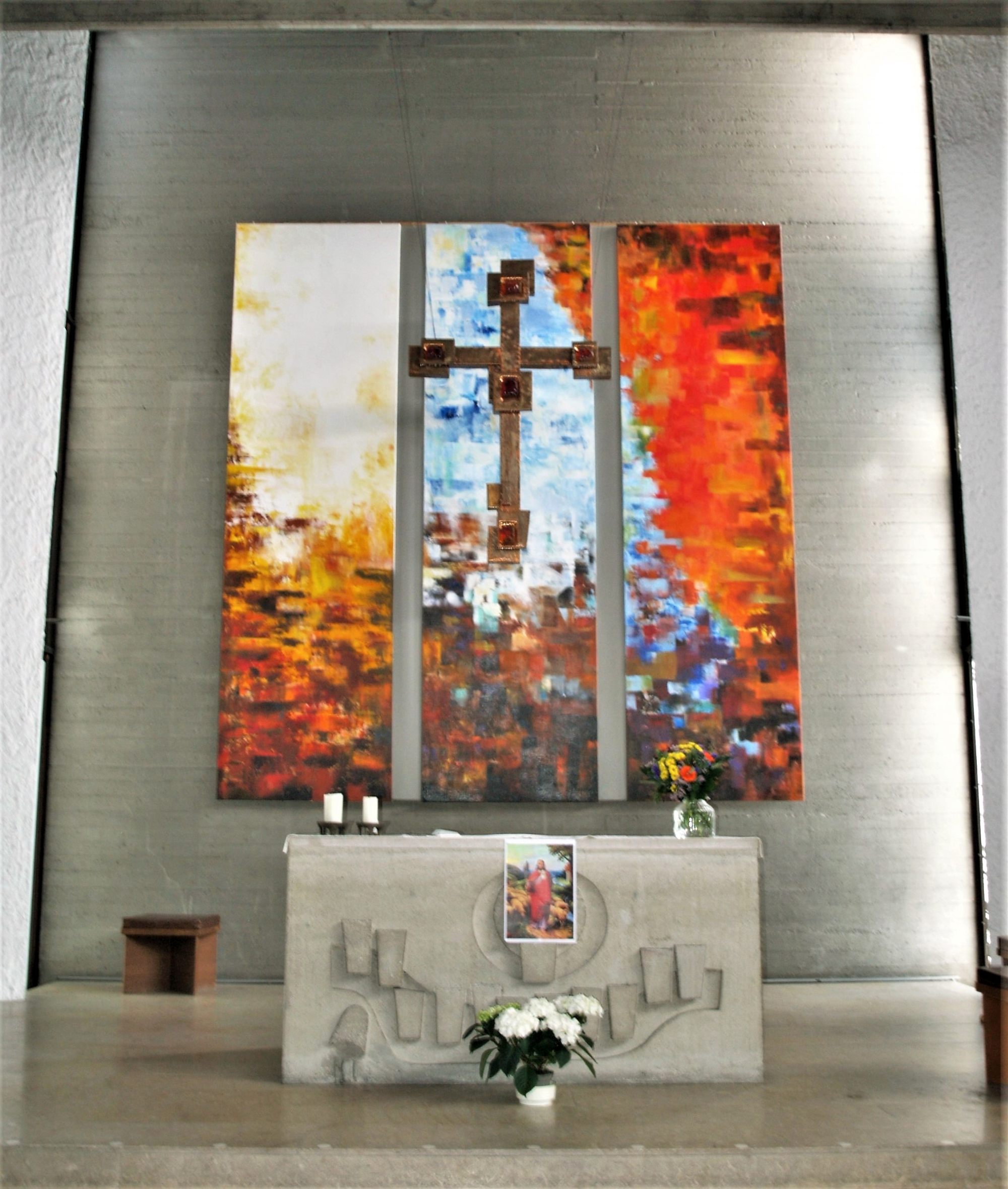 Altarrelief und Betondickglasfenster: Akadem. Maler Herman Bauch, Kronberg