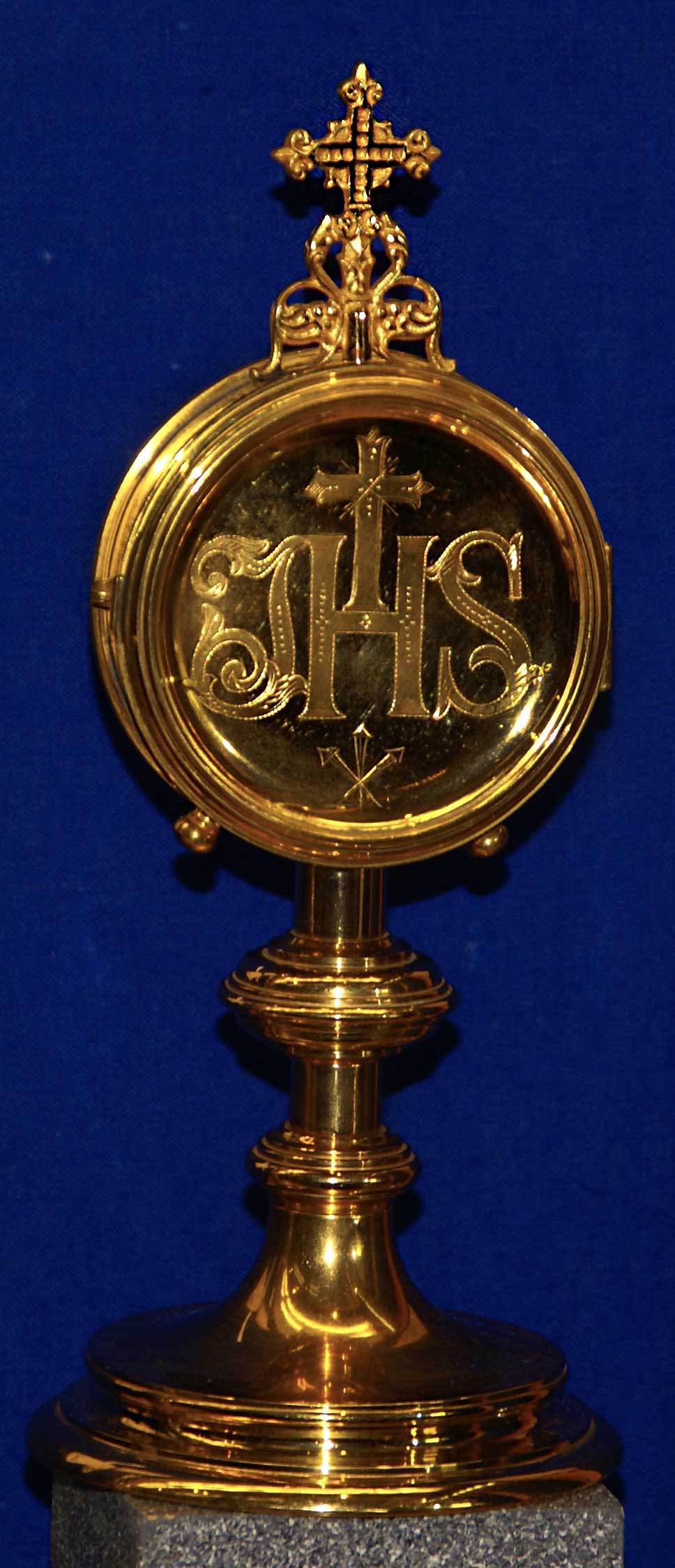 Custodia ist ein Gefäß zur Aufbewahrung oder zum Zeigen des Allerheiligsten.