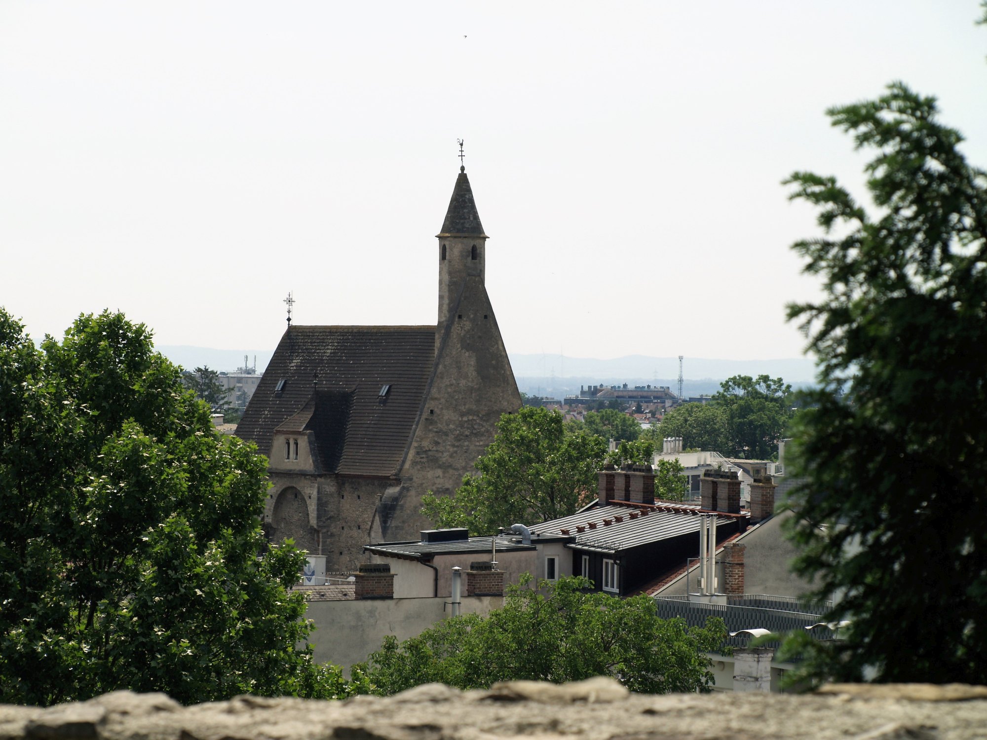 1443–1453 Bau der Kirche östlich anschließend an das ehem. „Bürgerspital“ (nach heutigen Begriffen ein Armen- und Siechenheim). Ursprünglich der Hl. Katharina geweiht, diente die Kirche immer wieder als Pfarrkirche, wenn die Othmarkirche zerstört und unbenützbar war (Türkenkriege).